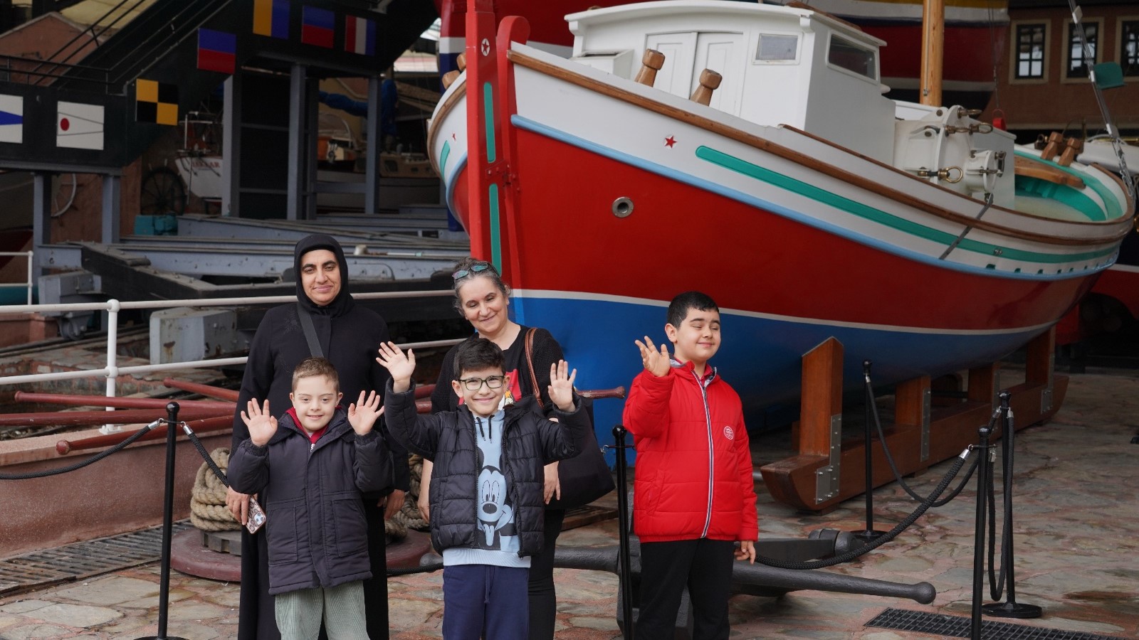 Keyif dolu bir gün geçiren aileler ve çocuklar, müze hatırası panosu önünde fotoğraf çektirerek bu özel günü ölümsüzleştirdi.