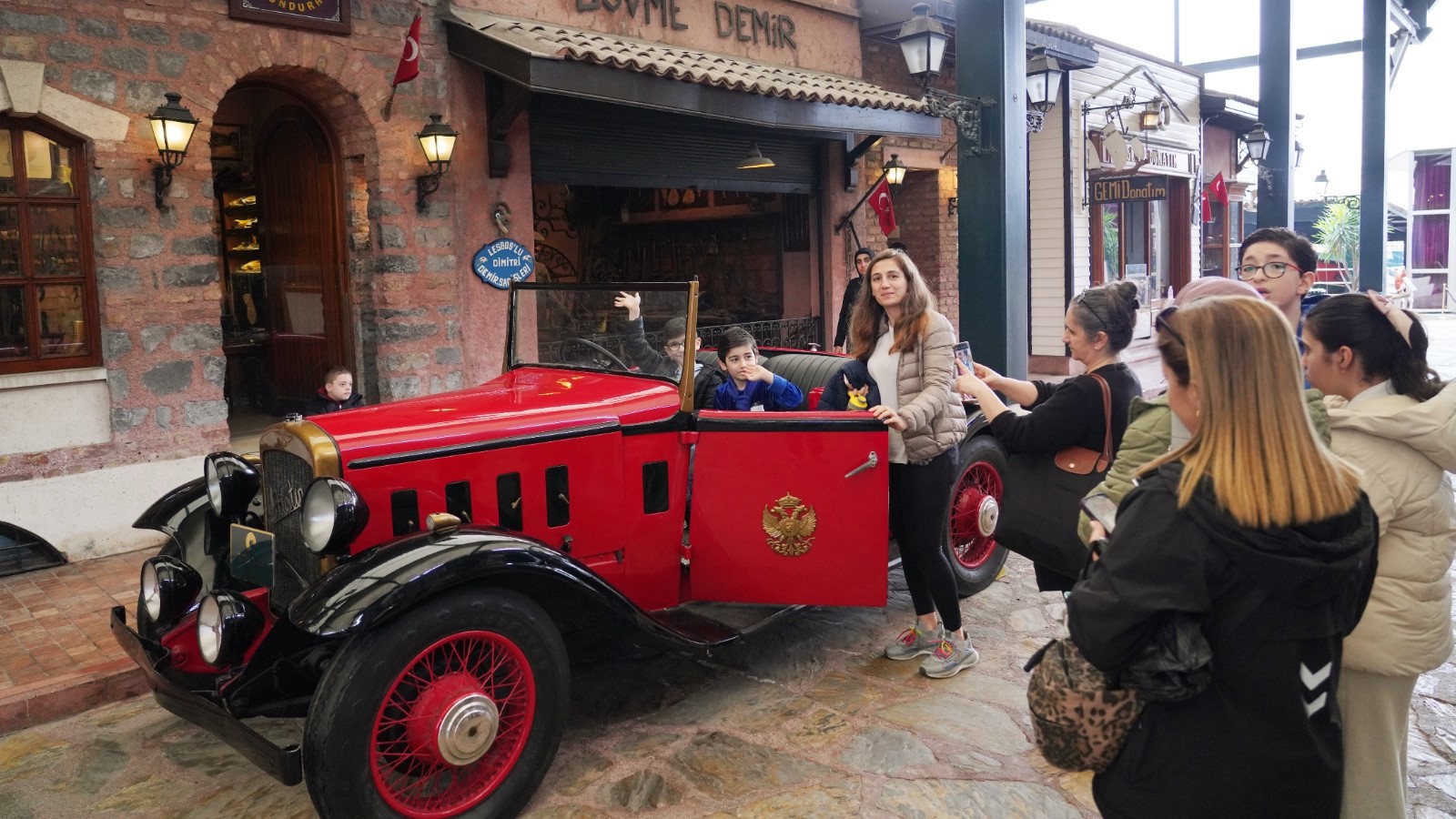 Keyif dolu bir gün geçiren aileler ve çocuklar, müze hatırası panosu önünde fotoğraf çektirerek bu özel günü ölümsüzleştirdi.